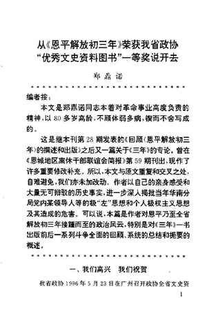 2-从《恩平解放初三年》荣获我省*优秀文史资料图书一等奖说开去(郑鼎诺)