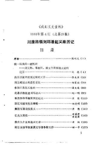 | 网盘路径:/时光图书馆珍藏系列/书籍文件/老图书/《成都文史资料_1988第4辑_总第21辑_川康将领刘邓潘起义亲历记》电子版合集.db | ||