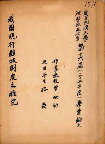 网盘路径:/时光图书馆珍藏系列/书籍文件/老图书/《我国现行县政制度之推究》电子版合集.db
