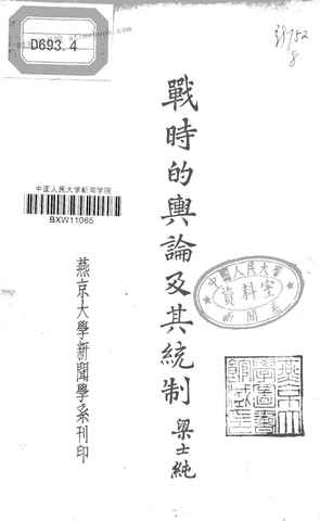 | 网盘路径:/时光图书馆珍藏系列/书籍文件/老图书/《战时的舆论及其统制》电子版合集.db | ||