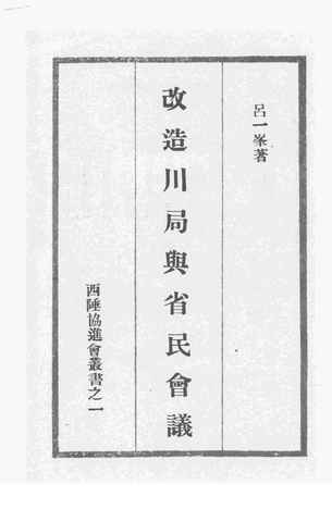 | 网盘路径:/时光图书馆珍藏系列/书籍文件/老图书/《改造川局与省民会议》电子版合集.db | ||