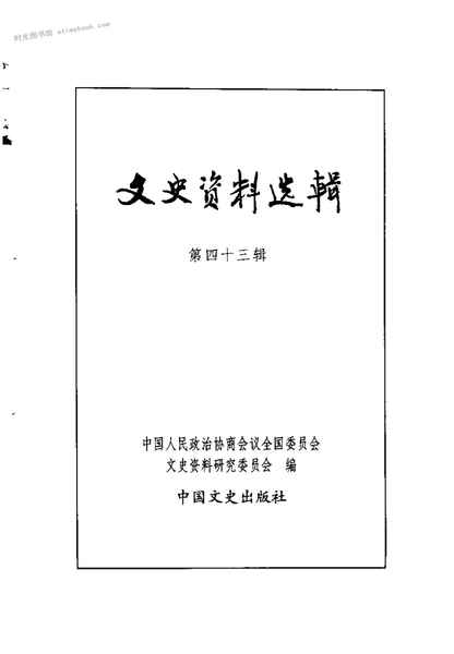 | 网盘路径:/时光图书馆珍藏系列/书籍文件/老图书/《文史资料选辑_第15卷第43辑》电子版合集.db | ||