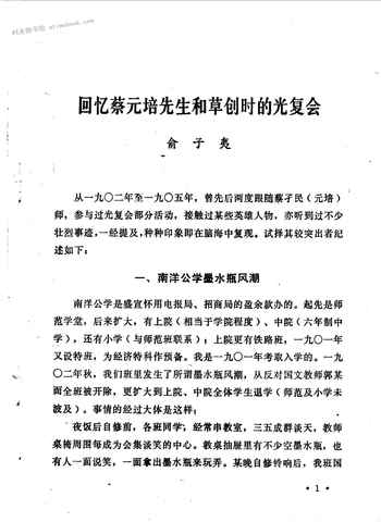 2-回忆蔡元培先生和草创时的光复会俞子夷
