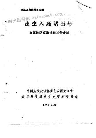 | 网盘路径:/时光图书馆珍藏系列/书籍文件/老图书/《方正文史资料_第4辑(出生入死话当年—方正地区反满抗日斗争史料)》电子版合集.db | ||