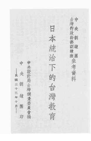网盘路径:/时光图书馆珍藏系列/书籍文件/老图书/《日本统治下的台湾教育》电子版合集.db
