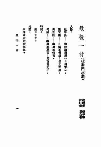 | 关键词:砥砺斗志剧,剧本,抗战宣传, | ||