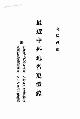 | 网盘路径:/时光图书馆珍藏系列/书籍文件/老图书/《最近中外地名更置录》电子版合集.db | ||