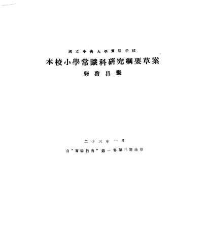 | 网盘路径:/时光图书馆珍藏系列/书籍文件/老图书/《本校小学常识科研究纲要草案》电子版合集.db | ||