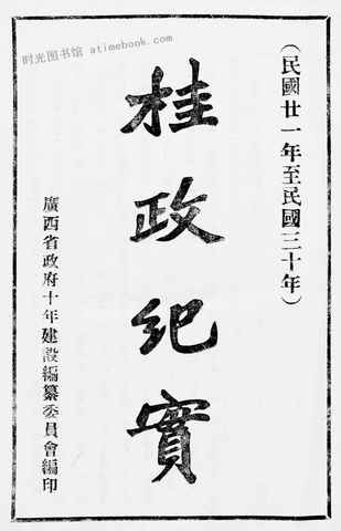 | 网盘路径:/时光图书馆珍藏系列/书籍文件/老图书/《桂政纪实(民国二十一年至三十年)》电子版合集.db | ||