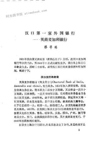 2-汉口第一家外国银行——英商麦加利银行蔡萼英