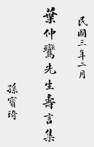 | 网盘路径:/时光图书馆珍藏系列/书籍文件/老图书/《民国三年二月_叶仲鸾先生寿言集》电子版合集.db | ||
