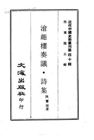 | 网盘路径:/时光图书馆珍藏系列/书籍文件/老图书/《沧趣楼奏议·诗集2》电子版合集.db | ||