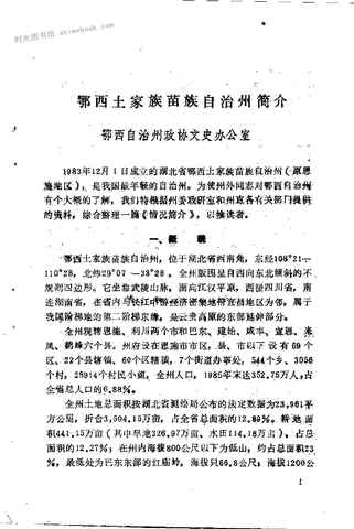 | 网盘路径:/时光图书馆珍藏系列/书籍文件/老图书/《湖北文史资料_1990年第1辑_总第30辑_鄂西南少数民族史料专辑》电子版合集.db | ||