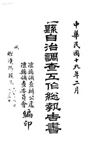 | 网盘路径:/时光图书馆珍藏系列/书籍文件/老图书/《澧县自治调查工作总报告书》电子版合集.db | ||