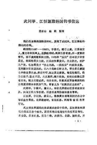 2-武同举、江恒源致韩国钧书信选——范崇山赵凯整理