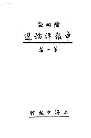 | 网盘路径:/时光图书馆珍藏系列/书籍文件/老图书/《申报评论选》电子版合集.db | ||