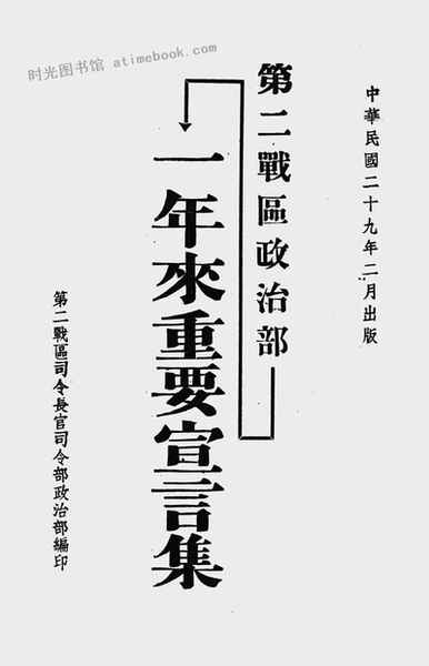 文件下载 | 名称:《第二战区政治部一年来重要宣言集》电子版合集 | |
