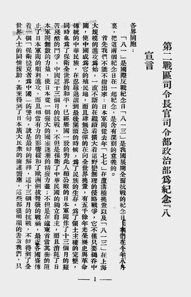 3-二第二战区司令长官司令部政治部为九一八七周年纪念宣言