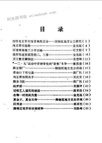 | 网盘路径:/时光图书馆珍藏系列/书籍文件/老图书/《舞钢区文史资料_第1辑》电子版合集.db | ||