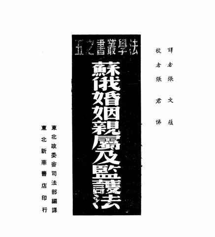 | 网盘路径:/时光图书馆珍藏系列/书籍文件/老图书/《苏俄婚姻亲属及监护法》电子版合集.db | ||