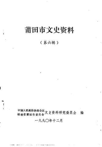 | 网盘路径:/时光图书馆珍藏系列/书籍文件/老图书/《莆田市文史资料_第6辑》电子版合集.db | ||