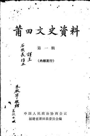文件下载 | 名称:《莆田文史资料_第1辑》电子版合集 | |