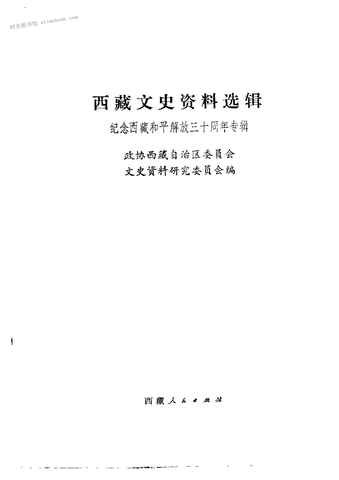 名称:《西藏文史资料选辑_第1辑_(纪念西藏和平解放三十周年专辑)》电子版合集