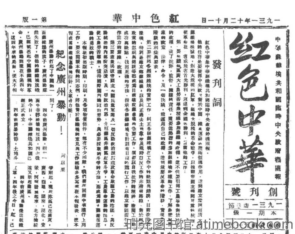 1931年12月11日,《红色中华》报创刊号第一版的发刊词:“红色中华是中华苏维埃共和国临时**的机关报。他的任务是要发挥**对于中国苏维埃运动的积极领导作用……以推翻帝国主义国民*的统治,使*在一省或者几省首先胜利,以达到全国的胜利……”书籍获取:书籍合集 喜欢 (1)