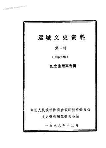 | 网盘路径:/时光图书馆珍藏系列/书籍文件/老图书/《运城文史资料_第2辑_总第9辑_纪念曲耀离专辑》电子版合集.db | ||