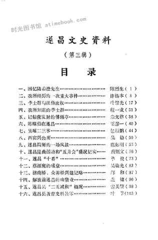 | 网盘路径:/时光图书馆珍藏系列/书籍文件/老图书/《遂昌文史资料_第3辑》电子版合集.db | ||