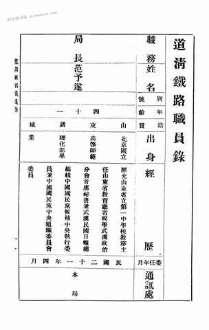 | 网盘路径:/时光图书馆珍藏系列/书籍文件/老图书/《道清线全国铁路职员录》电子版合集.db | ||