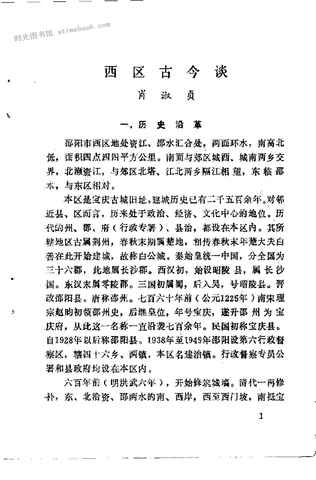 | 网盘路径:/时光图书馆珍藏系列/书籍文件/老图书/《邵阳市西区文史_第1辑》电子版合集.db | ||