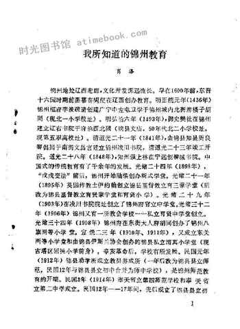| 网盘路径:/时光图书馆珍藏系列/书籍文件/老图书/《锦州文史资料_第9辑_锦州教育文化今昔》电子版合集.db | ||