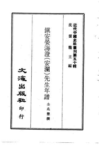 网盘路径:/时光图书馆珍藏系列/书籍文件/老图书/《镇安晏海澄(文澜)先生年谱》电子版合集.db