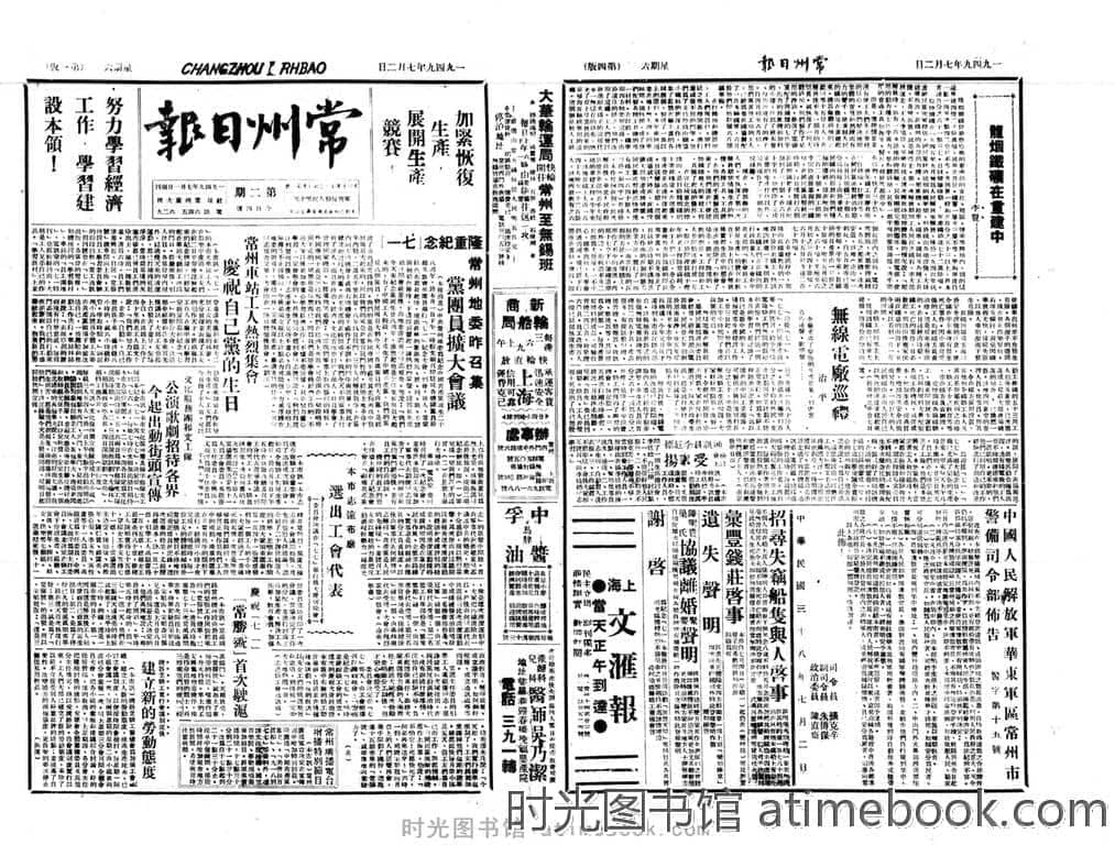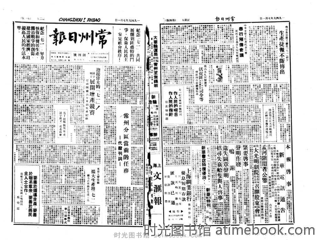 网盘路径:/时光图书馆珍藏系列/书籍文件/老报纸/江苏/《常州日报》1949年合集.db