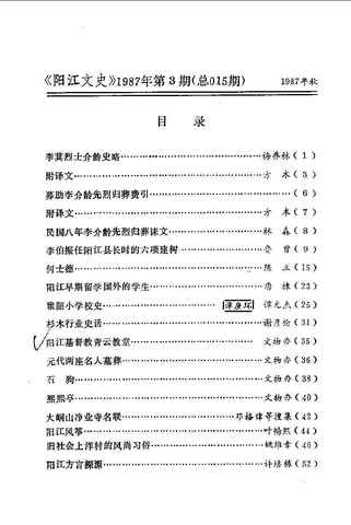 | 网盘路径:/时光图书馆珍藏系列/书籍文件/老图书/《阳江文史_1987第3期_总015期》电子版合集.db | ||
