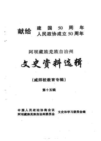 文件下载 | 名称:《阿坝藏族羌族自治州文史资料选辑_第15辑(威师校教育专辑)》电子版合集 | |