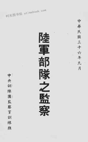 | 网盘路径:/时光图书馆珍藏系列/书籍文件/老图书/《陆军部队之监察》电子版合集.db | ||