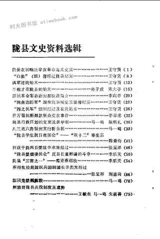 | 网盘路径:/时光图书馆珍藏系列/书籍文件/老图书/《陇县文史资料选辑_第1辑》电子版合集.db | ||