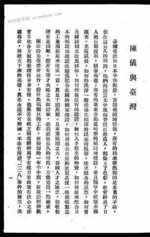 | 网盘路径:/时光图书馆珍藏系列/书籍文件/老图书/《陈仪与台湾》电子版合集.db | ||