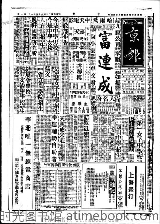 网盘路径:/时光图书馆珍藏系列/书籍文件/老报纸/北京/《京报》(北京)1919-1937/《京报》1932年合集.db