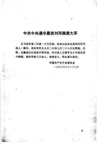 7-刘邓首长通令嘉奖一纵郓城大捷