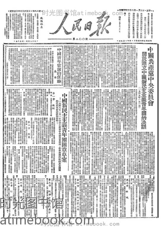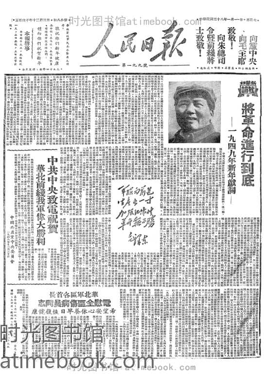 | 网盘路径:/时光图书馆珍藏系列/书籍文件/老报纸/《人民日报》1946-2021/《人民日报》1949年高清影印版_带检索.db | ||