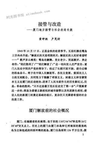 | 网盘路径:/时光图书馆珍藏系列/书籍文件/老图书/《鹭岛新生——厦门城市接管与社会改造》电子版合集.db | ||