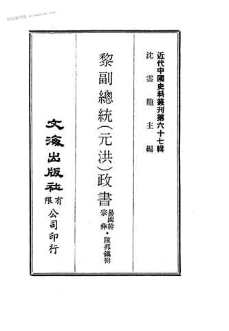 | 网盘路径:/时光图书馆珍藏系列/书籍文件/老图书/《黎副总统(元洪)政书》电子版合集.db | ||
