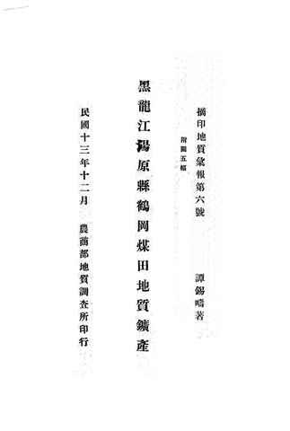 关键词:黑龙江汤原县鹤岗煤田地质矿产,