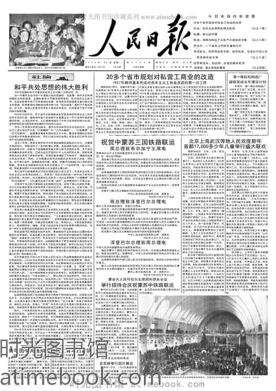| 网盘路径:/时光图书馆珍藏系列/书籍文件/老报纸/《人民日报》1946-2021/《人民日报》1956年高清影印版_带检索.db | ||