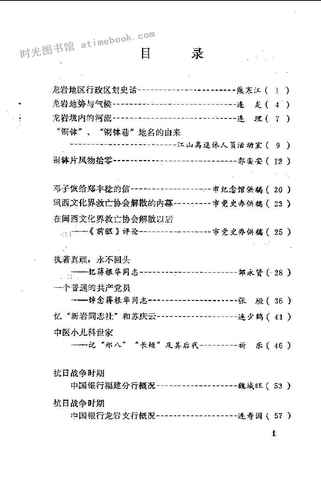 | 网盘路径:/时光图书馆珍藏系列/书籍文件/老图书/《龙岩文史资料_第11期》电子版合集.db | ||