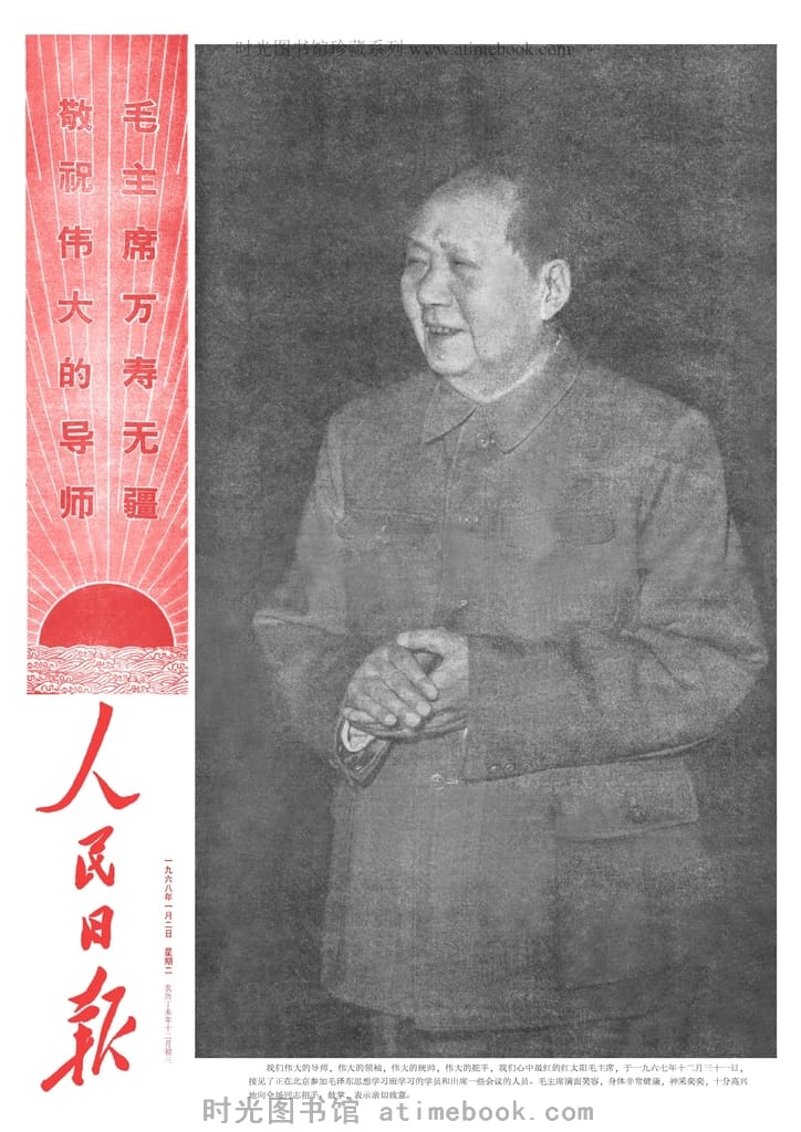 | 网盘路径:/时光图书馆珍藏系列/书籍文件/老报纸/《人民日报》1946-2021/《人民日报》1968年高清影印版_带检索.db | ||