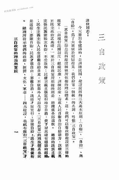 | 网盘路径:/时光图书馆珍藏系列/书籍文件/老图书/《三自政策的理论与实践》电子版合集.db | ||